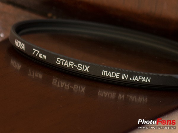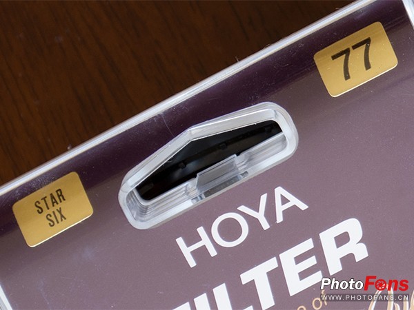 我们可以看到在滤镜盒子的最上方左侧写有滤镜的型号STAR SIX(六芒星),右侧则写有口径77mm。