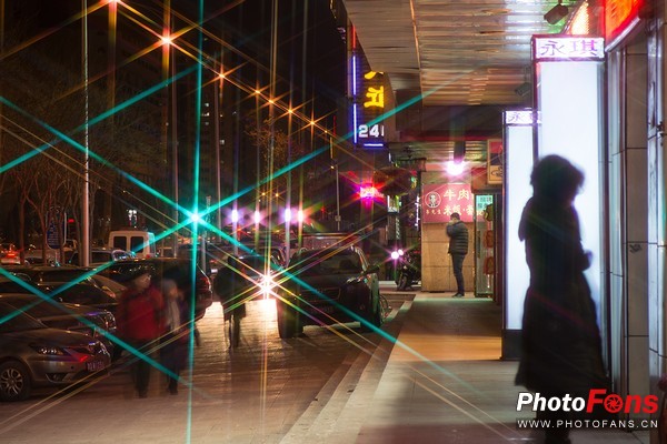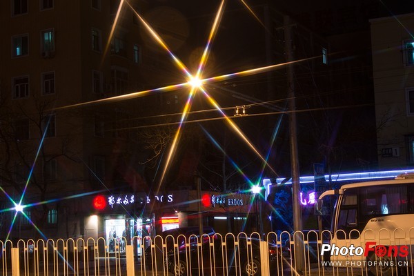 然后我们来看看使用这枚滤镜拍摄出的照片吧,虽然这枚滤镜的镜面并非全一致,但是改变滤镜的角度(乃至于位置)只会影响到画面中星芒旋转的角度,而且不同距离不同强度的灯光本身星芒角度就不一致,所以说一般情况下我们只需要把他拧到最紧就可以了。好了废话少说来看样片吧:
