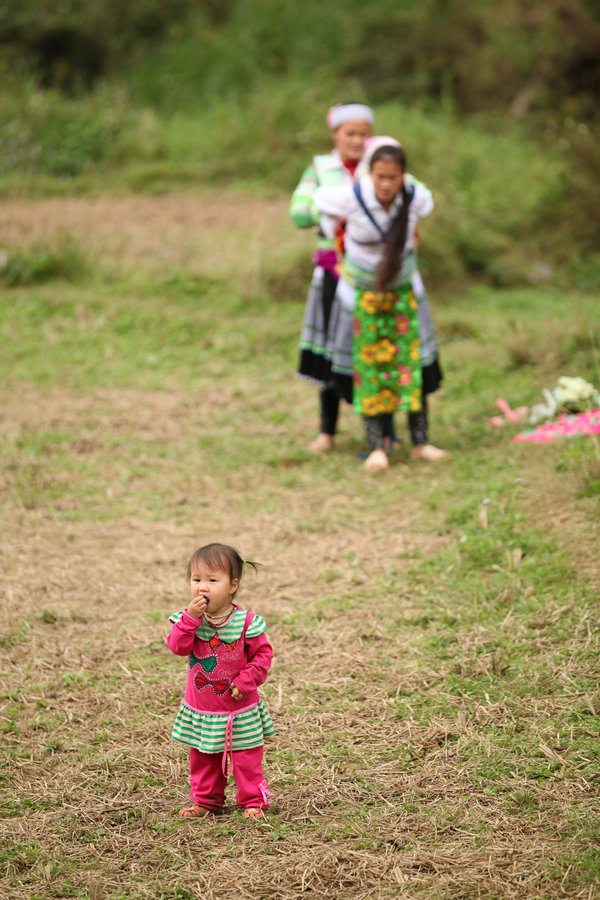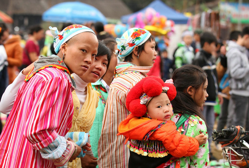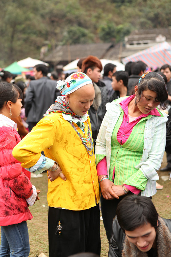 苗族,则打扮得花枝招展,看似应该是花苗,不同的是越南花苗以青绿色为主调